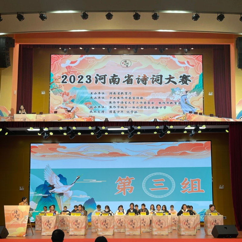 今年上半年,我校语委办接到河南省教育厅《关于举办“2023 年河南省诗词大赛”的 通知》(教社语〔2023〕115 号)后,高度重视,联合各学院,通过多种生动活泼的形式,在全校学生中进行积极宣传和动员,鼓励学生在大赛官网上报名参加海选。全面布置,重点突破,从专业素养出发,校语委办联合文学院领导和教师,有计划地对复赛胜出的学生进行诗词知识的辅导,夯实基础,加深理解,拓展视野,发散思维,经过系统性的辅导,参赛学生信心大增,在2023河南省诗词大赛现场决赛中历经“大浪淘沙”“月宫折桂”“诗林飞花”“出口不凡”等环节,最终喜获佳绩。
